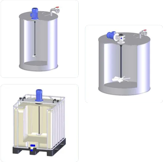 Je nach Anwendung, Behältergrösse, Viskosität und Prozessanforderung kommen unterschiedliche Mischer-Systeme zum Einsatz. Nachfolgend finden Sie eine Übersicht der verfügbaren Systeme und deren typische Einsatzbereiche.